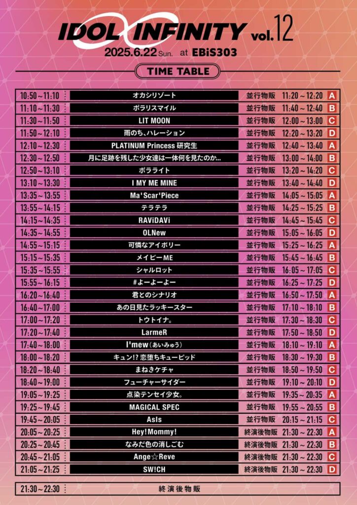 17:40~18:00 | I’mew(あいみゅう) | 18:10~19:10 |