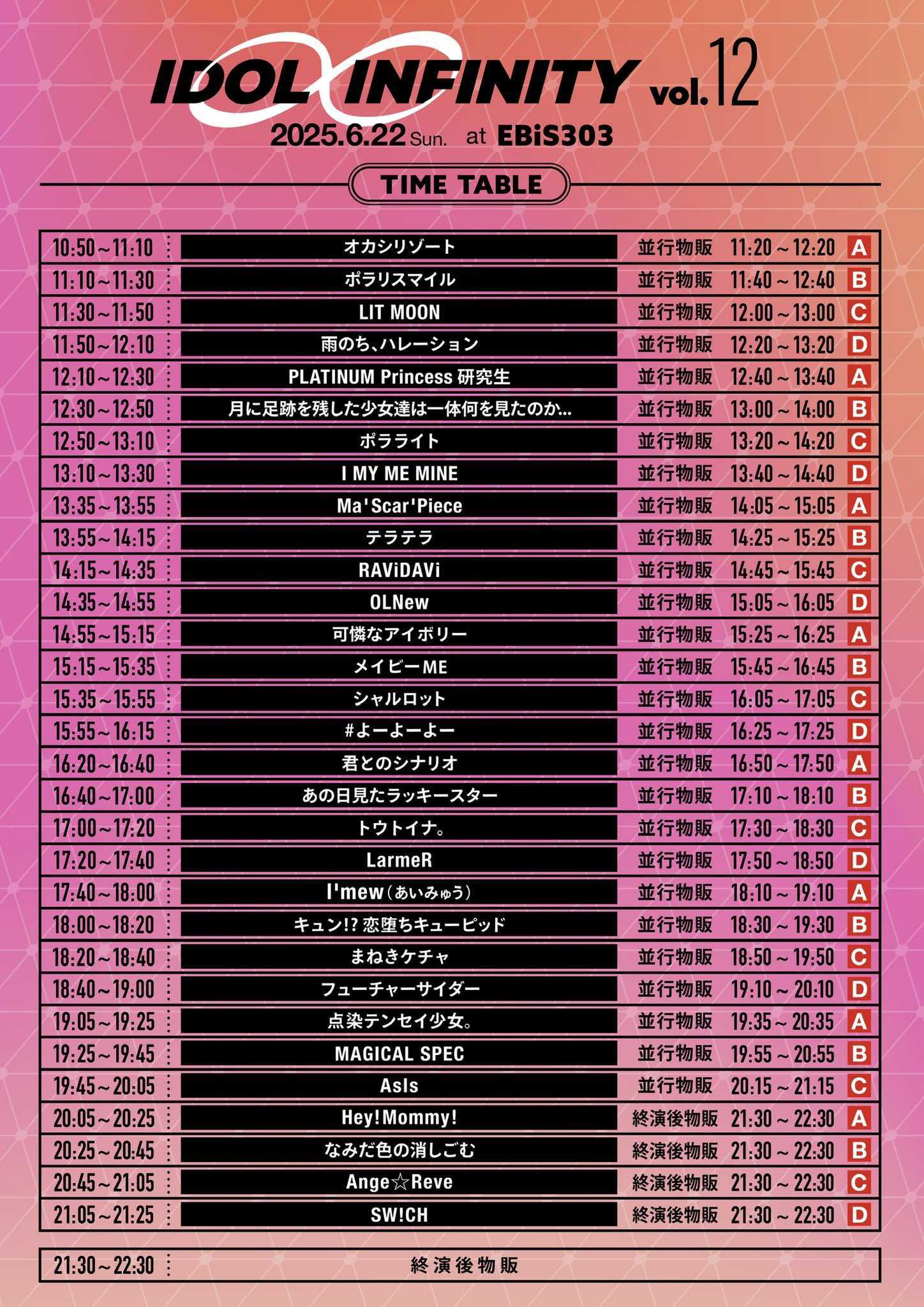 12:10~12:30 | PLATINUM Princess 研究生 | 12:40~13:40 |