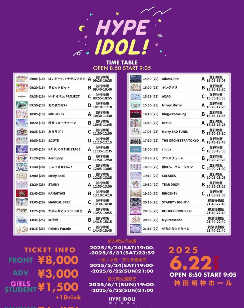 19:30-19:50 | TEAR DROP! (てぃあどろっぷ!) | 20:25-21:25 |